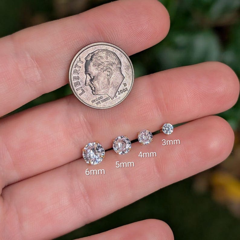 Size: 6mm 1ct round, 5mm .5ct round, 4mm .2ct round, 3mm